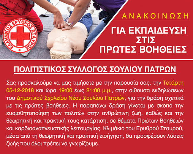 Home  /  ΝΕΑ  /  ΕΚΠΑΙΔΕΥΣΗ ΣΤΙΣ ΠΡΩΤΕΣ ΒΟΗΘΕΙΕΣ